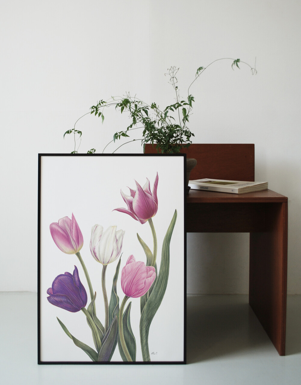 5월이면 우리 곁에서 다양한 색상으로 피어있는 핑크 보라계열의 튤립을