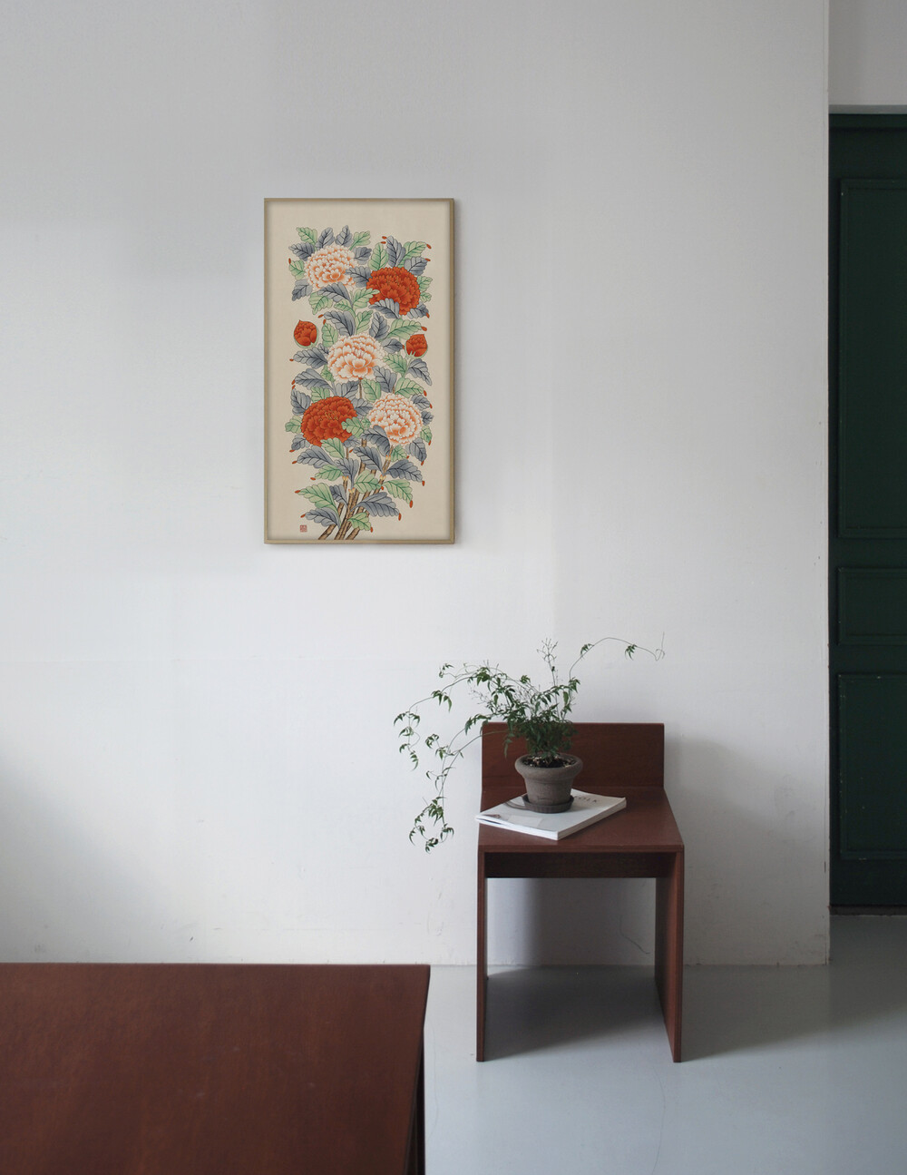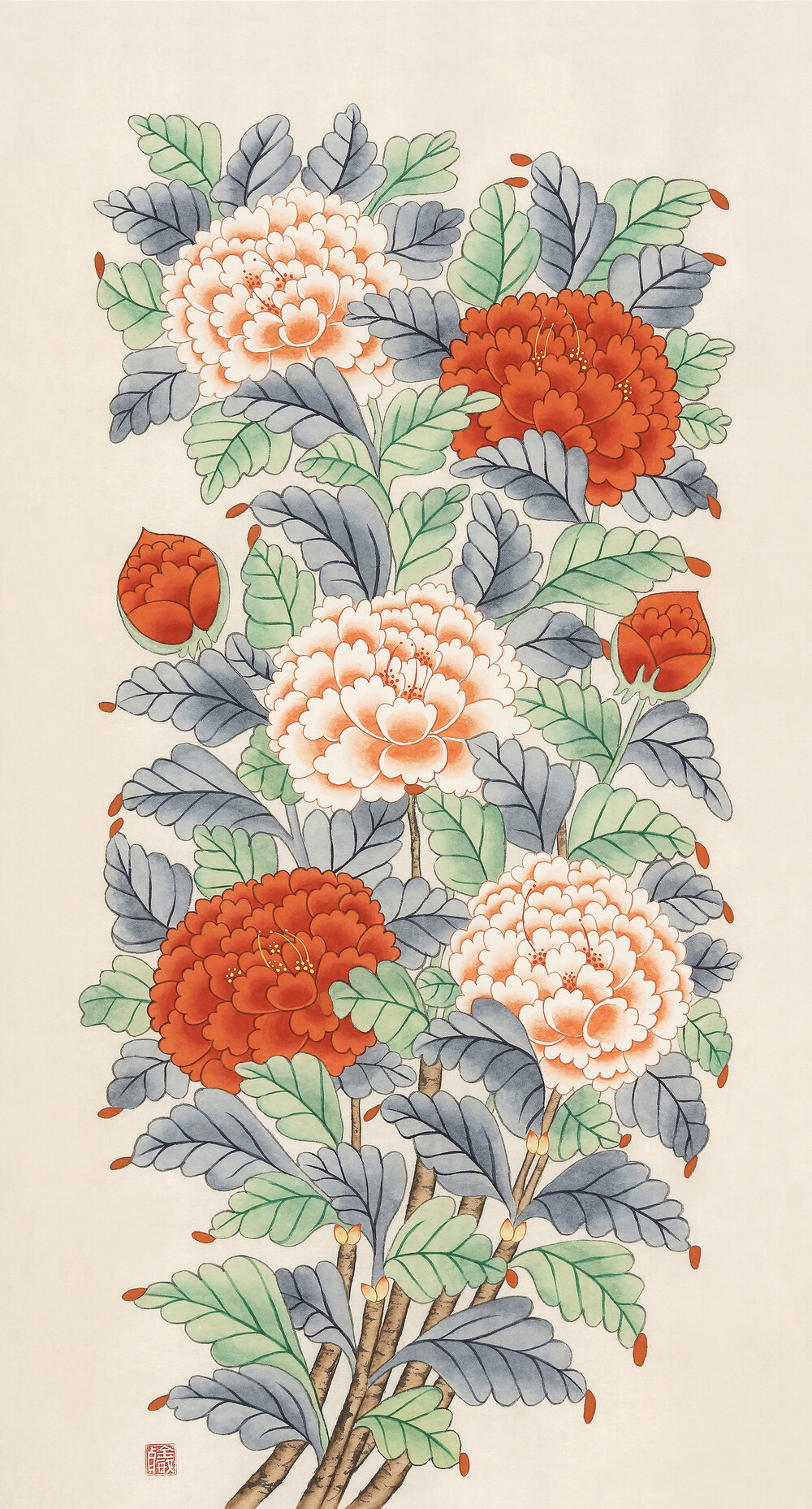 풍성하고 화려한, 아름다운 모란의 모습을 강조한 독립적인 형식이 큰 인기를 끌었습니다.