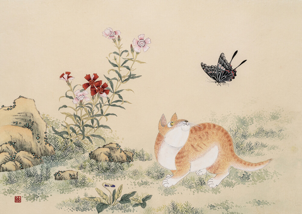 그림 제목도 '검은 나비가 고양이를 놀리다' 로 바꿔야 할 것 같습니다.