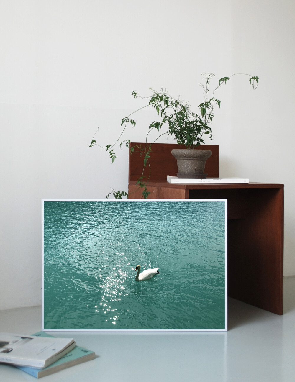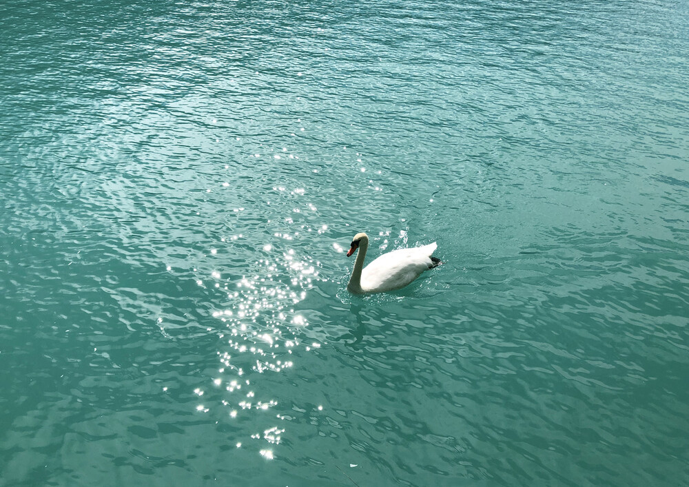 스위스의 한적한 호수 마을 브리엔츠에서 만난 에메랄드빛의 윤슬, 그리고 그 위를 유유히 유영하는 한 마리의 백조.